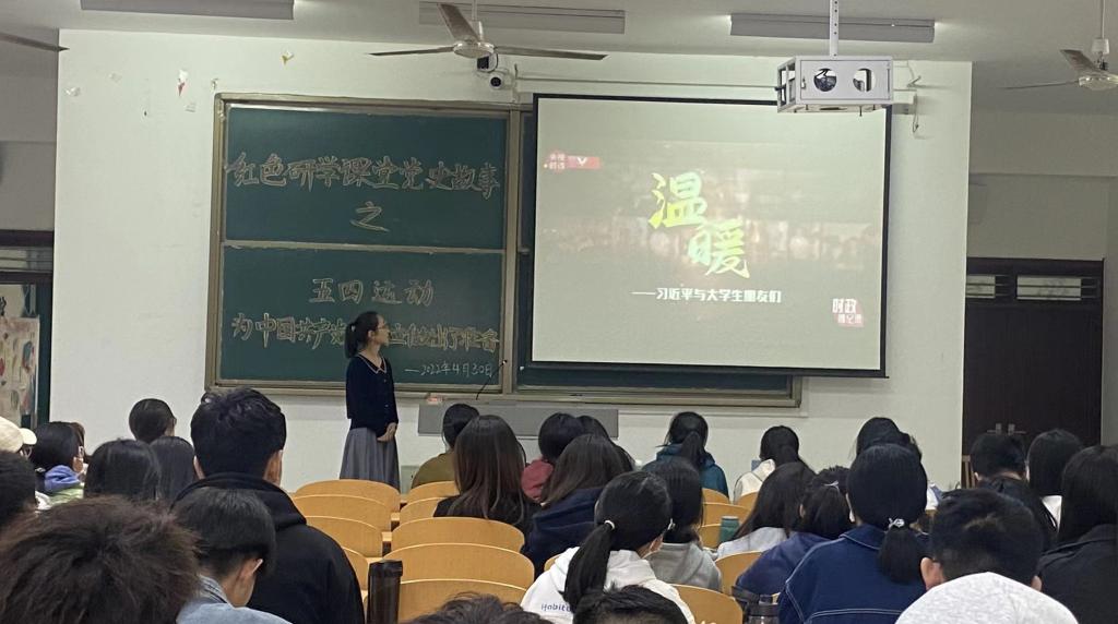 4月30日上午,国产91中文综合字幕“红色研学课堂”《习近平讲党史故事》在博文楼0427教室开讲。选修该门第二课堂的76名学生参加听课学习。