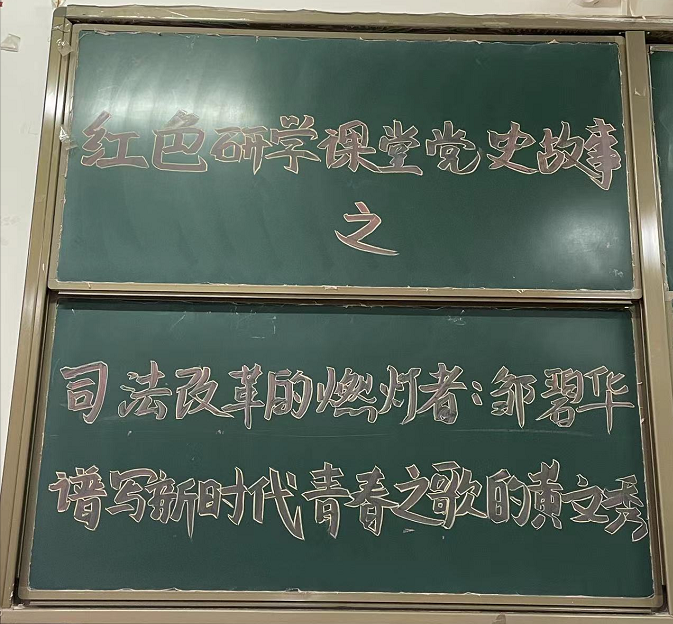 主讲教师左海静结合《习近平讲党史故事》书目中中国特色社会主义新时代的19个故事,结合专业特点选取了“司法改革的‘燃灯者’:邹碧华”和“谱写新时代青春之歌的黄文秀”两个内容,重点讲述了本课程第七个和第八个党史故事,从故事的原委、故事的延展和故事的启迪三个方面分享了中国特色社会主义新时代的感人事迹。
