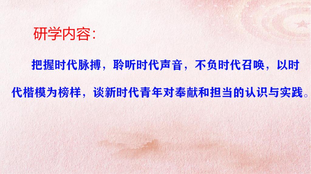 在红色研学中,同学们深入研读了《习近平讲党史故事》书目中中国特色社会主义新时代的其余17个故事,以小组形式进行了以“把握时代脉搏,聆听时代声音,不负时代召唤,以时代楷模为榜样,谈新时代青年对奉献和担当的认识与实践”为主题的学习讨论。