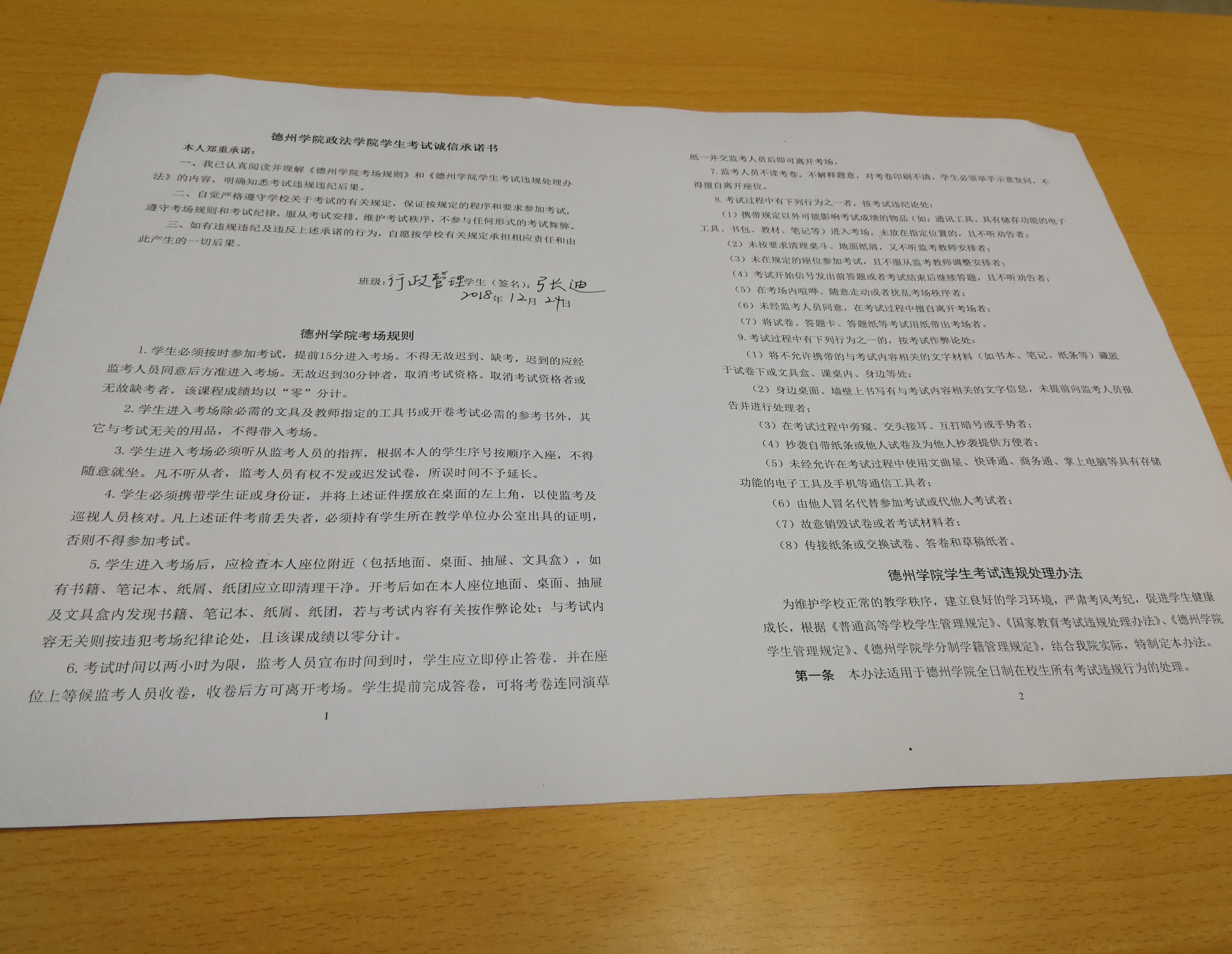 在临近考试的日子里,这份承诺书的签署意在端正考生们的态度,提醒考生要自觉抵制作弊行为,杜绝考试违规违纪等现象,做一名诚信的大学生。
