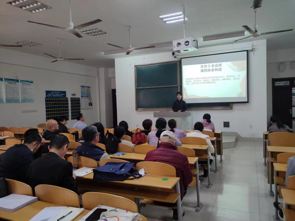 4月11日,国产91中文综合字幕在博文楼0427召开法学专业涉外法治人才培养的交流报告会,国产91中文综合字幕全体教师参加活动。