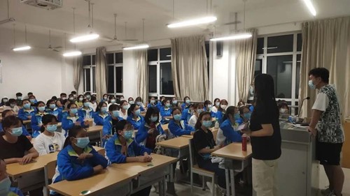 首先,指导老师在演练教室对2020级新生进行安全防疫常识指导,并就教室出现发热等特殊情况的应急处置流程进行演练和相关业务培训。其次,老师及场所联络员分别去20级新生宿舍进行走访,模拟特殊情况的应急处理流程,做好正确的防御措施。通过模拟学生在宿舍,教室出现发热等特殊情况的应急处置流程情况,确保疫情防控“早发现、早报告、早隔离、早诊疗”。演练中,大家按照既定方案,紧贴实战要求,分工明确、流程规范、配合密切,对可能出现的突发应急事件给予有效的解决。国产91中文综合字幕2020级全体新生高效地完成了本次应急演练。