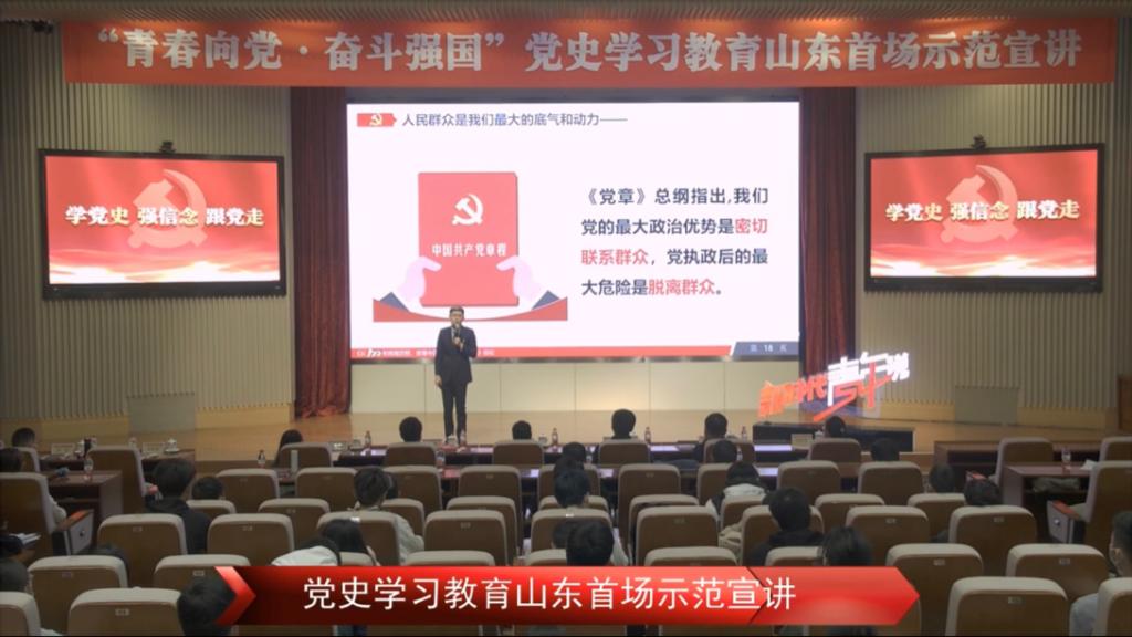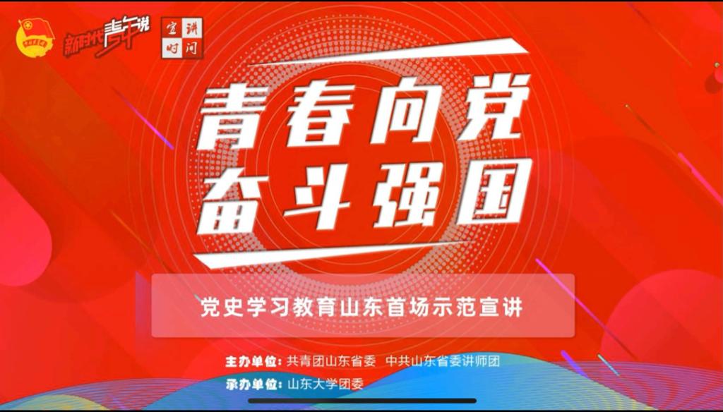 2021年4月16上午9:30-11:30,于山东网络直播平台,国产91中文综合字幕有序组织学生收看了山东省首场“青春向党,奋斗强国”示范宣讲直播活动。此次活动旨在让同学们更加认识党,了解党,坚持学史明理、学史增信、学史崇德、学史力行,深刻领会习近平总书记的重要讲话的丰富内涵,扎实党史学习教育。
