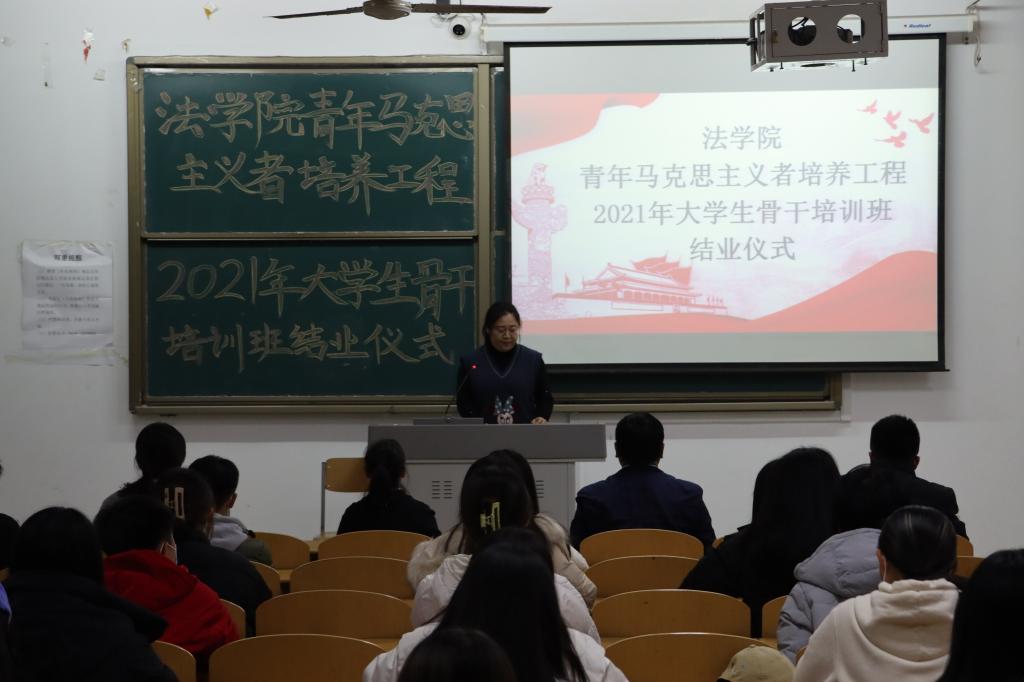 2021年12月8日晚,国产91中文综合字幕于博文楼427教室举行2021年青年马克思主义者培养工程大学生骨干培训班结业仪式。国产91中文综合字幕党委书记、国产91中文综合字幕党委副书记、国产91中文综合字幕学生工作人员以及青马班全体学员参加本次结业仪式。
