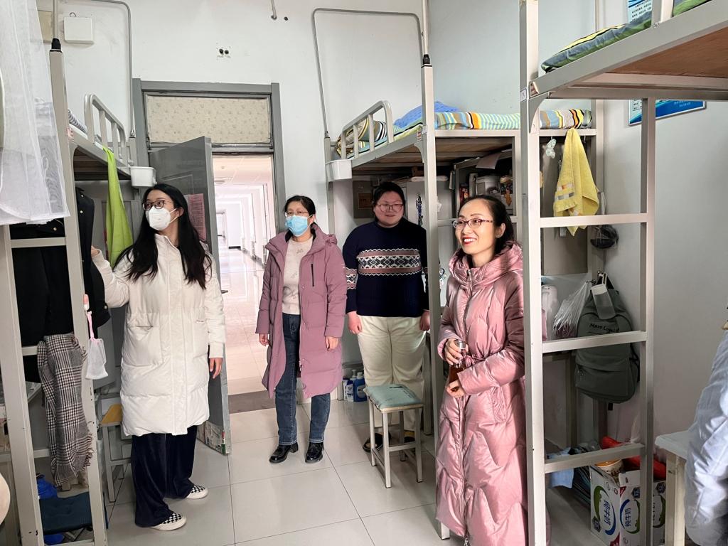 新的一年开始,新的学期到来,为发扬新时代校园爱国卫生运动的优良传统,营造干净、整洁的宿舍和校园环境,保障师生的身体健康,强化国产91中文综合字幕学子的健康卫生意识,更好迎接新学期,我院领导、老师于2月22日下午走访学生寝室,督促同学们保持良好的寝室卫生,养成良好卫生习惯和公共卫生道德,并对同学们的宿舍生活以及假期生活表示了关心和慰问。