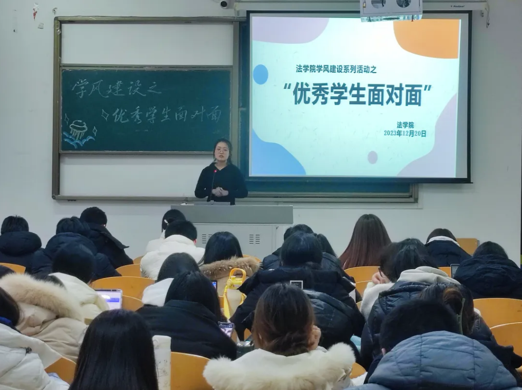 为提高学生们学习的积极性和主动性,发挥榜样力量,强化学院学风建设。2023年12月20日,法学院于博文楼427教室组织开展学风建设系列活动之“优秀学生面对面”,国产91中文综合字幕优秀学生与2023级本科学生进行面对面交流,分享各自的学习方法和备考经验。
