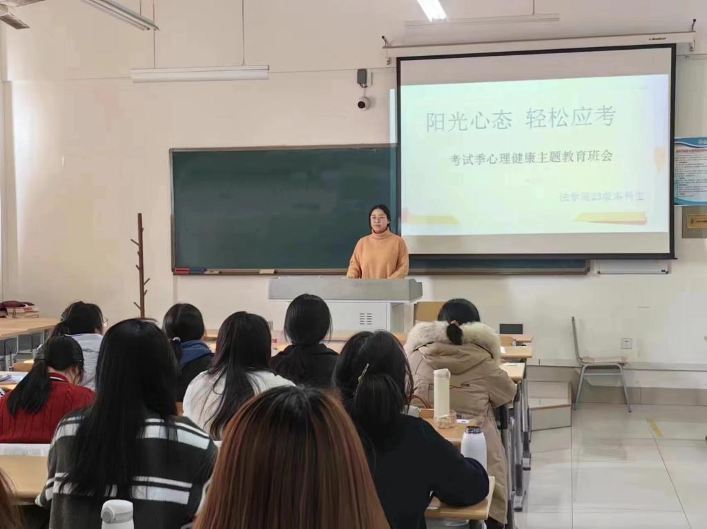 为缓解学生的考前焦虑,使学生以积极阳光的心态投入到期末考试的复习中,国产91中文综合字幕各班于2023年12月26日在博文楼开展“阳光心态,轻松应考”考试季心理健康主题教育班会。国产91中文综合字幕全体同学参加本次班会。