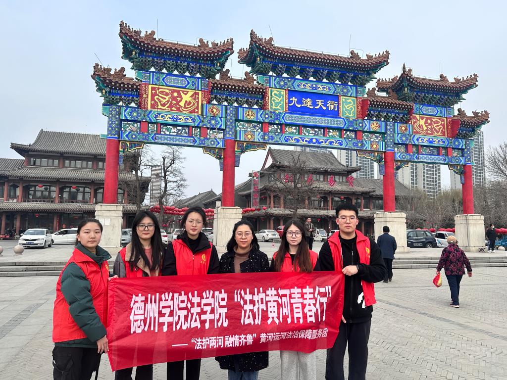 我院根据活动通知积极组队参加,通过召开座谈会,细化活动方案,发出活动倡议书等形式遴选了指导教师和招募了实践队队员。实践队利用寒假时间,有效发挥法学专业优势,结合“法护两河 融情齐鲁”的主题,围绕黄河流域生态保护和高质量发展、大运河文化传承与保护、社情调研、“两河牵手 法治护航”等内容,线上开展普法“云宣讲”,走进运河文化德州古运河码头、四女寺水利枢纽、齐河法院、济南济阳区黄河宪法主题公园等地,开展法治文化宣讲、普法宣传、问卷调查、黄河生态法庭观摩、巡河护河志愿服务等系列活动,以“青春之行”宣传《中华人民共和国黄河保护法》,讲述黄河运河的悠久历史以及法护两河的重要意义,积极号召广大青少年坚定不移地做生态文明建设的宣传者、实践者。