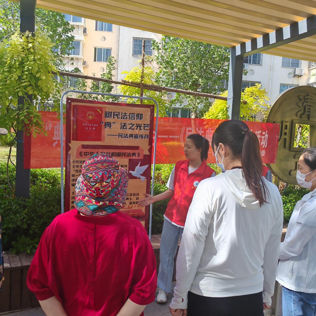 5月11日,青年大学生走进南龙社区开展“‘典’亮幸福 法伴一生”《民法典》宣传活动。大学生通过悬挂横幅、现场宣讲、发放宣传单等方式,结合热点新闻及典型案例,向社区居民宣讲《民法典》中关于个人信息保护、劳动纠纷、婚姻家庭、民间借贷等法律法规。“务工纠纷的起诉流程及化解?”“夫妻离婚子女抚养权确认及财产分配?”……与百姓生活相关的法律问题一一得到了解答。活动共发放宣传资料100余份,现场解答问题50余条,提高了居民对《民法典》的知晓率。
