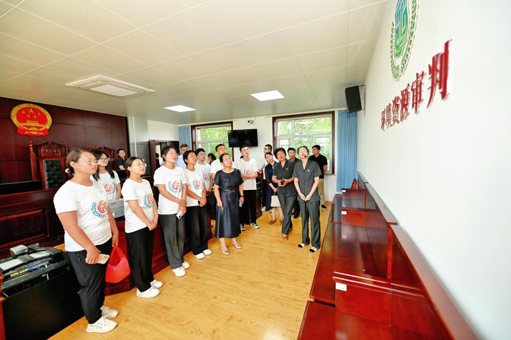 在平阴县人民法院环境资源审判法庭,团队成员实地参观诉讼服务大厅,详细了解资源环境审判案例,并就黄河流域全段覆盖的生态资源保护新机制、环境资源审判法庭典型案例等内容与平阴法院工作人员开展座谈交流,将所学理论知识与司法实务相结合,加深了对有关理论内容的理解和运用。
