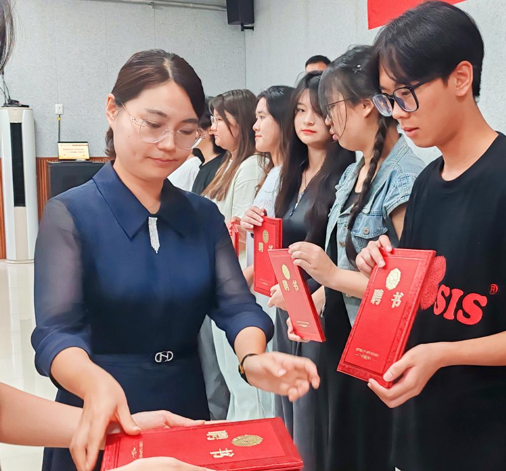 为帮助我院2024级学生快速适应、更好融入大学学习和生活,协助老师高效完成学生管理工作和班级初期建设工作,来自2023级法学、行政管理专业的10名同学,被学院聘请为2024级新生朋辈班级助理,学院党委书记武珊珊为其颁发聘书。