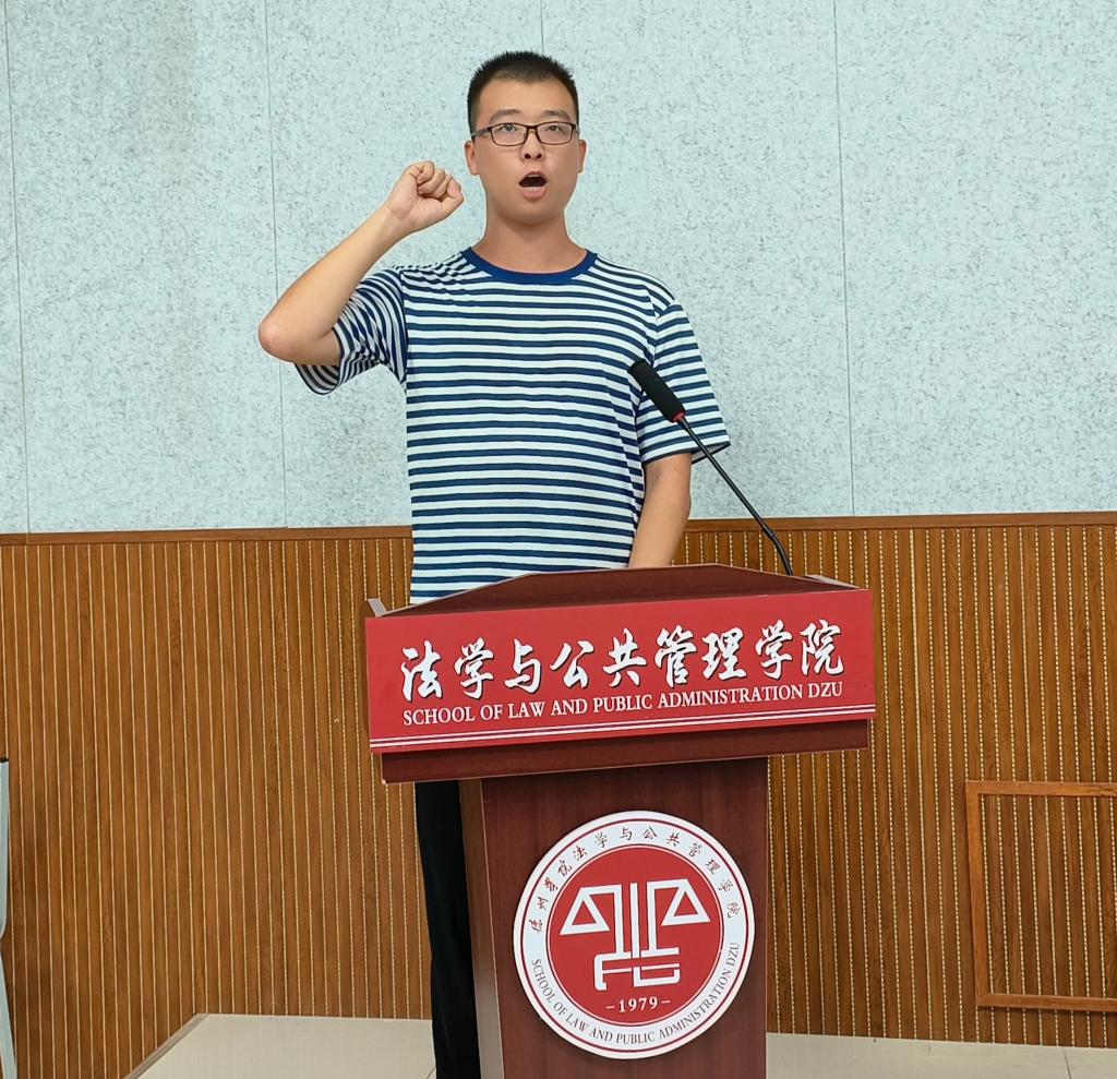 2021级法学专业殷国鑫带领全体新生进行了入学宣誓。全体新生斗志昂扬,用铿锵洪亮声音表达了对学校庄严的承诺,将以青春之我担负民族复兴之大任。