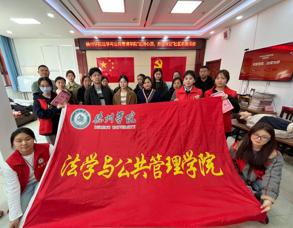 为深入贯彻落实党的二十届三中全会精神,充分发挥党建引领作用,进一步增强党员师生的责任意识和服务意识,11月5日下午,德州学院法学与公共管理学院师生党员、党外知识分子代表前往新河社区开展“法润心田 救在身边”志愿服务活动。