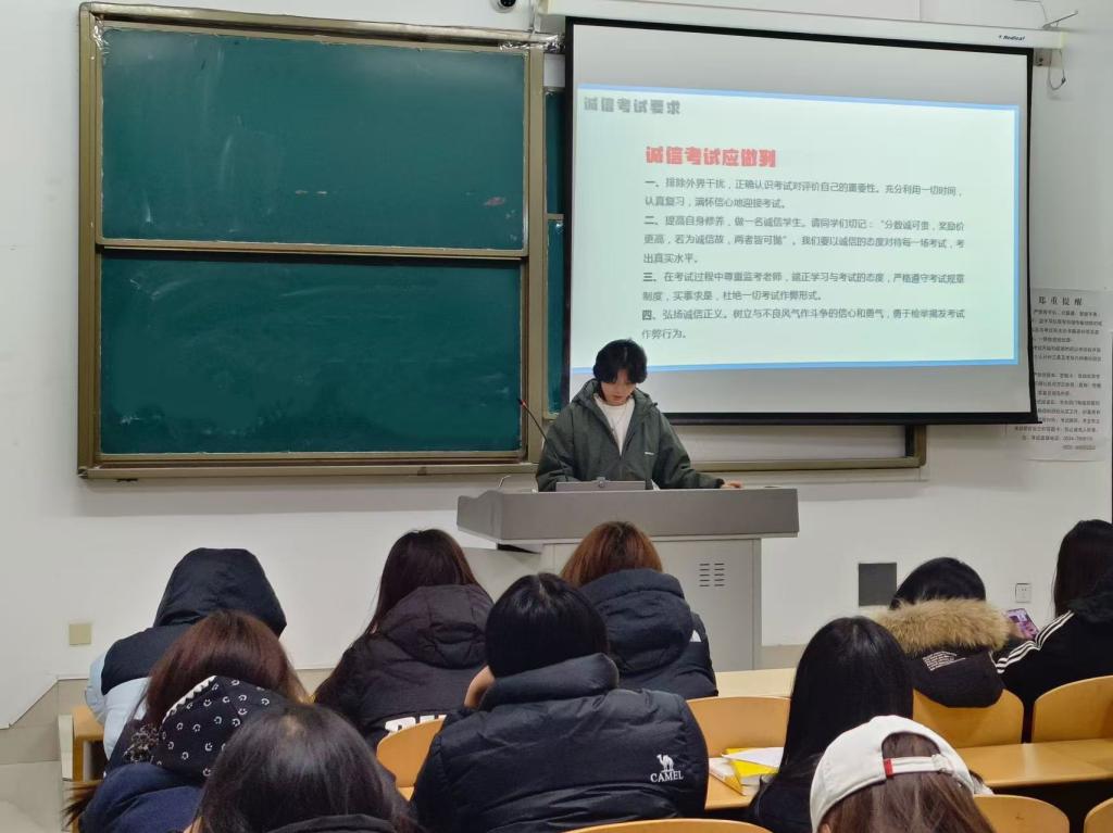 此次主题班会的召开,旨在引导学生认识到诚信在学习和生活中的重要性,尤其是在考试期间,更要坚守诚信底线。班会期间,各班班主任和辅导员详细阐述了诚信考试的意义,强调了遵守考试纪律的必要性,并详细介绍了学校关于考试的规章制度,以确保每位学生都能明确知晓并严格遵守。会后,各班组织学生签署了诚信应考承诺书。