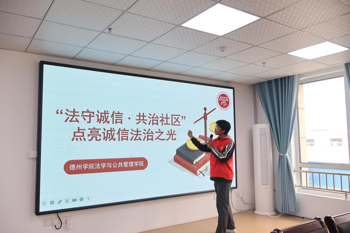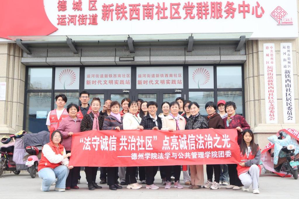 为深入贯彻落实党的二十大关于“弘扬诚信文化,健全诚信建设长效机制”的决策部署,积极响应山东省教育厅《“共同上一堂诚信主题思政大课”工作方案》要求,2025年4月8日,德州学院法学与公共管理学院师生志愿者赴德城区铁西南社区,开展“法守诚信·共治社区——点亮诚信法治之光”主题实践活动,推动诚信法治教育走深走实。