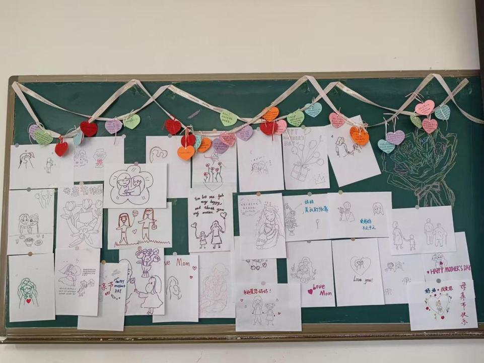 活动伊始,主讲人为同学们讲述了母亲节的起源故事,并通过一段网络视频,使同学们想起自己与母亲相处的日常画面,感受到母亲的耐心陪伴与默默付出,这些平凡却又无比动人的日常片段,引发了同学们强烈的共鸣,不少同学眼中泛起了感动的泪花。随后,在“母爱剪影描绘”环节,同学们用彩笔在A4纸上精心绘制与母亲共度的温馨时光,如一起烹饪家常菜、午后散步等场景,一幅幅精美的作品跃然纸上。接下来,在“爱心笺语书写”环节时,大家积极分享了与母亲在一起的难忘回忆,并在爱心卡片上写下对母亲的感恩话语,许下未来陪伴的承诺。最后,在作品展示环节,原本普通的黑板瞬间变成了一面充满爱意的展示墙,同学们互相交流、分享作品背后的故事。现场气氛热烈而温馨,爱意在空气中肆意流淌。同学们纷纷表示,要将这份感恩之情化作实际行动,在日常生活中多关心母亲、多陪伴母亲,用一点一滴的付出回报母亲的养育之恩。