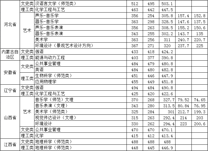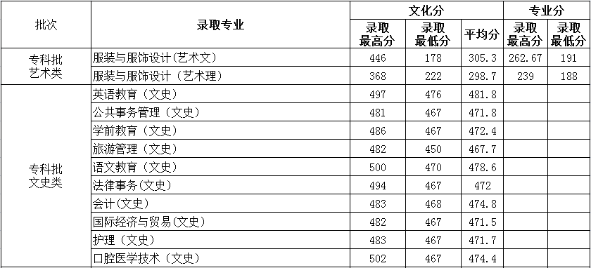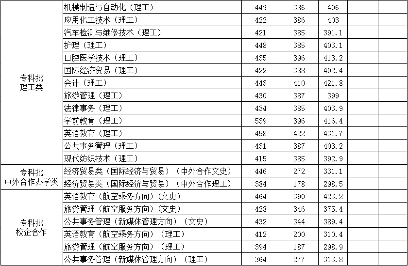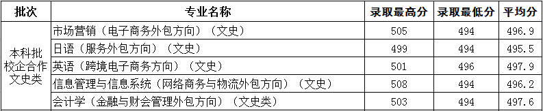 2017年校企合作本科文史、理工类各专业录取分数统计表