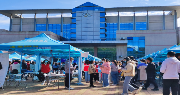 2021年10月26日,我校联合中国化学工程第三建设有限公司、鲁南制药等50多家大型企业举办的“职等你来 筑梦未来”招聘会在体育馆前小广场举行。