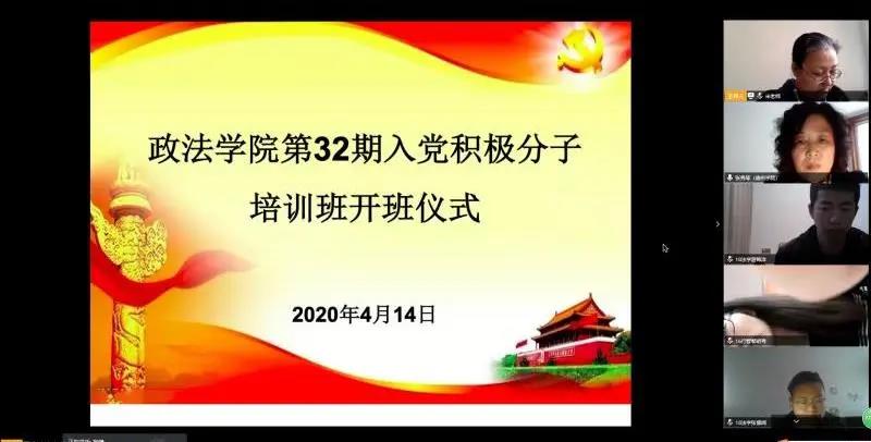 政国产91中文综合字幕党总支按照学校组织部统一安排部署,于2020年4月14日下午举行了第32期入党积极分子培训班开班仪式。因疫情原因,本次开班仪式通过线上视频方式举行。党总支书记张秀琴,党总支副书记米彦、本期培训班全体授课老师、政国产91中文综合字幕第32期入党积极分子培训班全体学员参加了开班仪式。