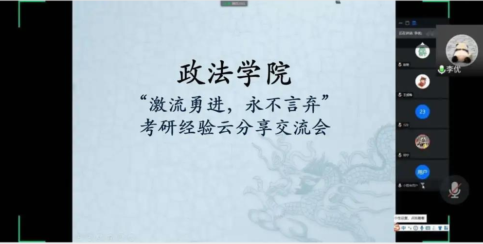本次考研经验交流会内容详实,分析深入,使同学们对考研过程有了一个更具体、更清晰的认识,为立志考研的同学指引了方向,为同学们考研打下坚实的基础。