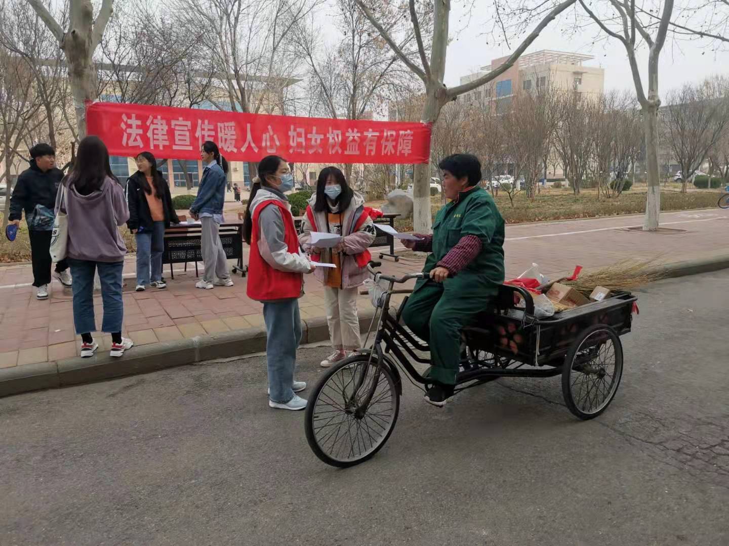 活动中,国产91中文综合字幕大学生第三学生餐厅前设置了工作台、拉起横幅,热情主动地向过往师生、工人师傅等分发法律知识传单,宣传、讲解我国妇女权益保护法律知识,解答相关法律问题。