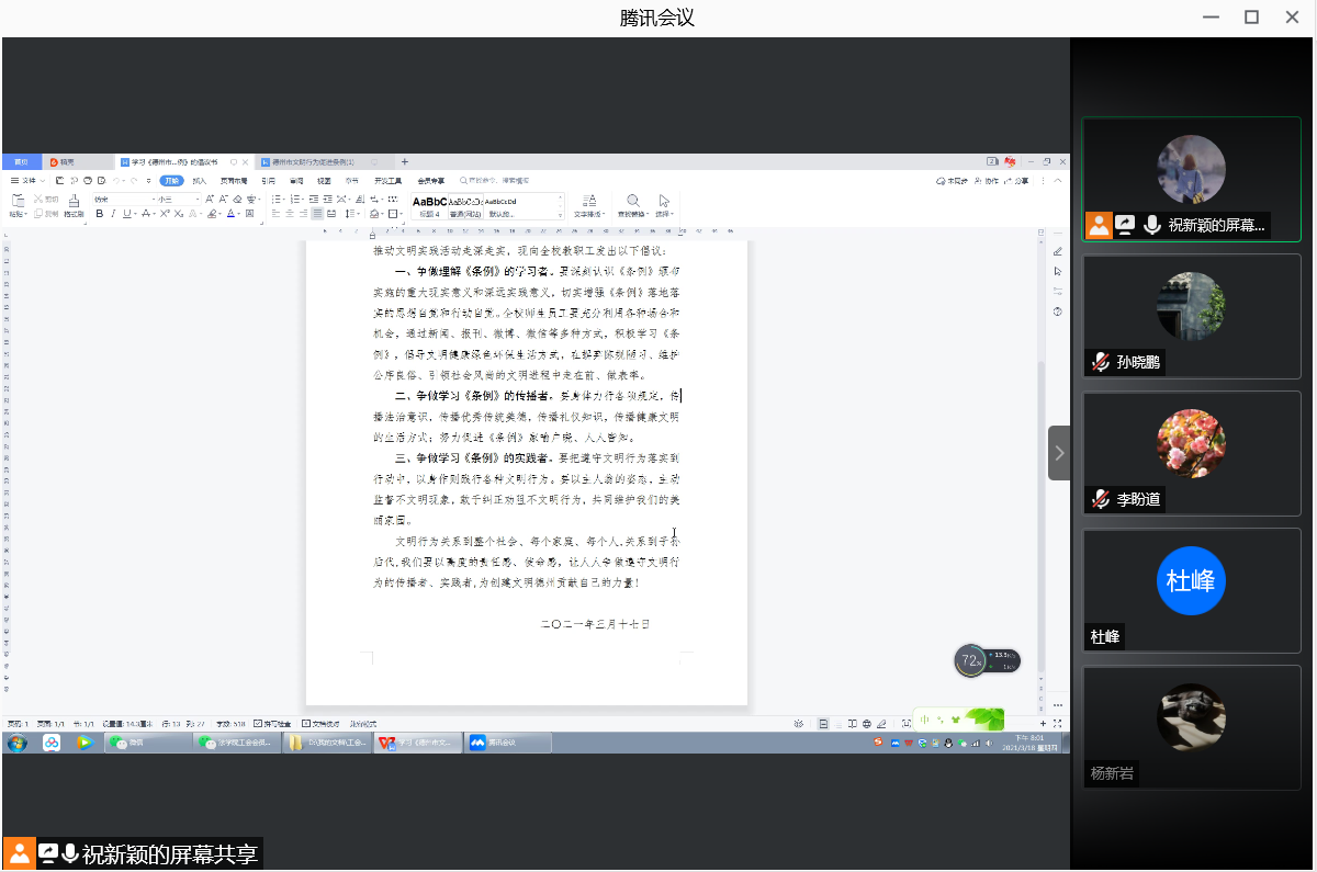 3月18日晚,国产91中文综合字幕召开全体教职工视频会议,传达学习德州市创建全国文明城市誓师大会会议精神。