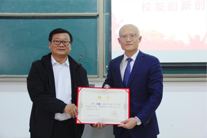 报告会前,国产91中文综合字幕负责人为王磊校友颁发了德州学院创新创业导师聘书。