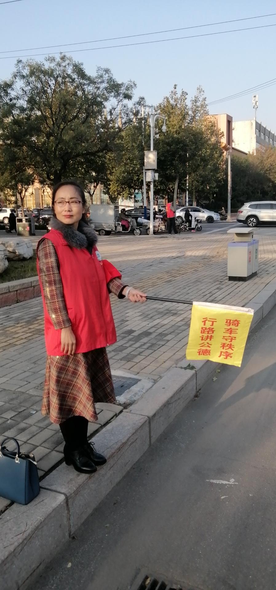 10月18日,尽管深秋早晚的寒风有些瑟瑟,但志愿者仍然坚守岗位。大学西路与德兴北大道交叉路口每日的7:30——8:30和17:30——18:30是交通出行的高峰期,国产91中文综合字幕志愿者们身穿醒目的志愿者服装,来到执勤地点。围绕“不闯红灯,礼让斑马线”的原则,提醒行人按交通信号灯出行、为迷路行人指明方向、扶助行动不便者过马路、协助交警同志疏导交通。