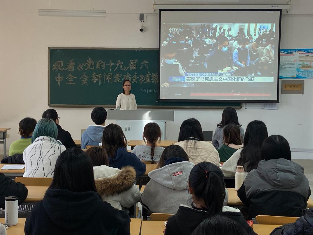 11月12日上午,国产91中文综合字幕党委组织中心组成员及部分师生集中收看十九届六中全会新闻发布会直播。