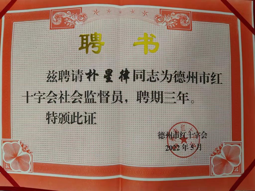 2022年5月12日,国产91中文综合字幕朴星律博士受聘为首批德州市红十字会社会监督员。在德州市红十字会社会监督员聘任仪式暨社会监督工作座谈会议上,朴星律博士围绕我市红十字宣传工作提出了意见建议。今后,朴星律博士将积极发挥好社会监督员的作用,为促进全市红十字事业高质量发展做出贡献。