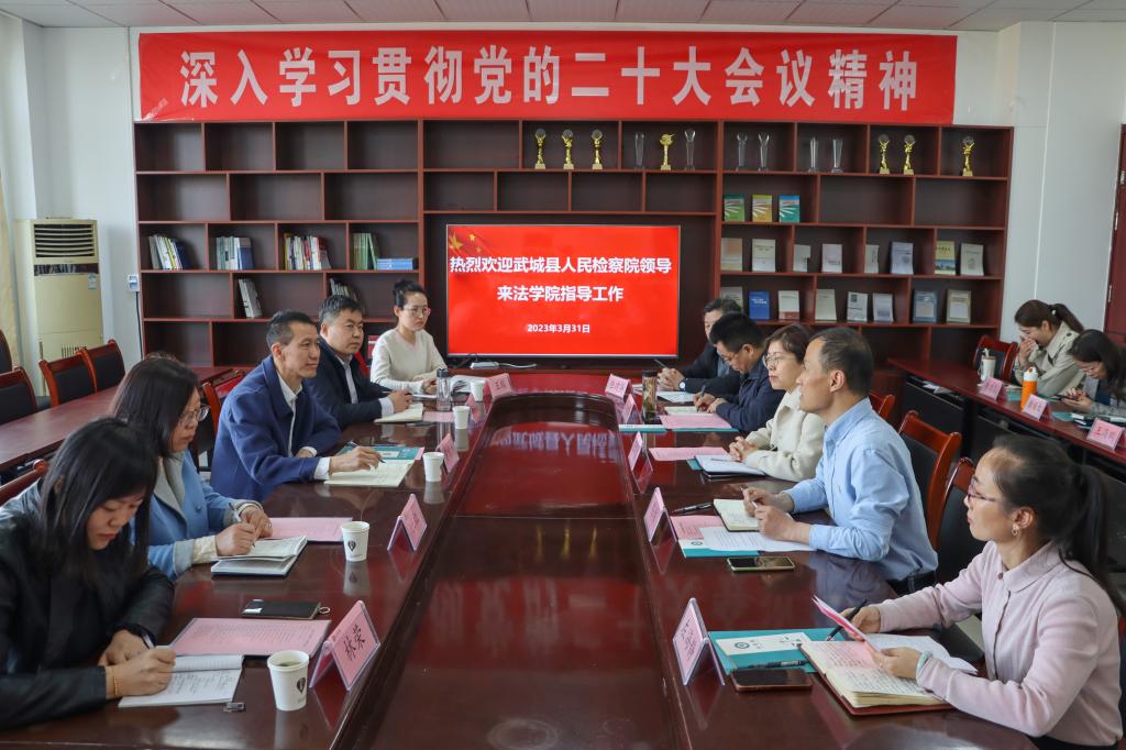 2023年3月31日,武城县人民检察院检察长贾维力一行来国产91中文综合字幕交流工作。武城县人民检察院第二检察部主任杜红洲、第一检察部一级检察官王红、办公室副主任王瑞、第一检察部三级检察官助理林荣陪同来访。