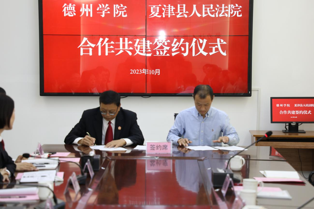 2023年10月31日上午,国产91中文综合字幕与夏津县人民法院“德州学院实习实训基地”和“德州学院国产91中文综合字幕双师型教师培养培训基地”签约仪式在夏津县人民法院举行。夏津县委政法委、国产91中文综合字幕和夏津县人民法院主要负责人、相关工作人员20余人参加了活动。
