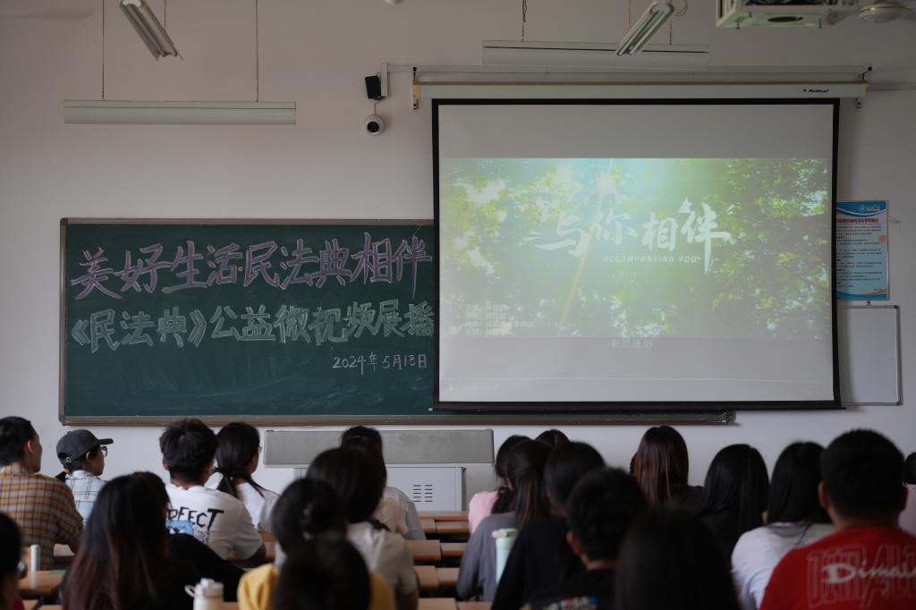 2024年5月是全国第4个“民法典宣传月”,为深入实施“八五”普法规划,贯彻落实习近平法治思想,弘扬社会主义法治精神,带领广大学生学习民法典、宣传民法典,运用民法典,5月18日,国产91中文综合字幕“美好生活·民法典相伴”民法典公益微视频展播活动在博文楼417教室举行,来自全校19个学院的40余名学生参加观看。
