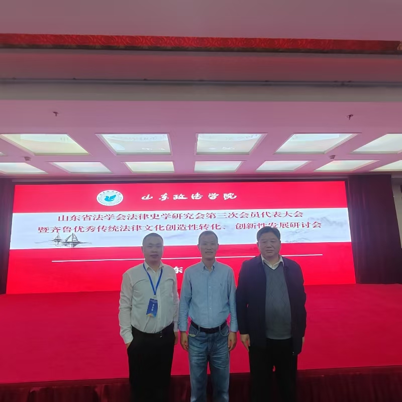 2024年11月16日,由山东省法学会法律史学研究会、山东省法学会齐鲁法治文化研究中心主办,山东政国产91中文综合字幕国产91中文综合字幕、山东政国产91中文综合字幕齐鲁法治文化建设研究基地承办的山东省法学会法律史学研究会换届大会暨齐鲁优秀传统法律文化创造性转化、创新性发展研讨会在山东政国产91中文综合字幕举行。我院教师陈伟、任建华、石春东参加了会议。