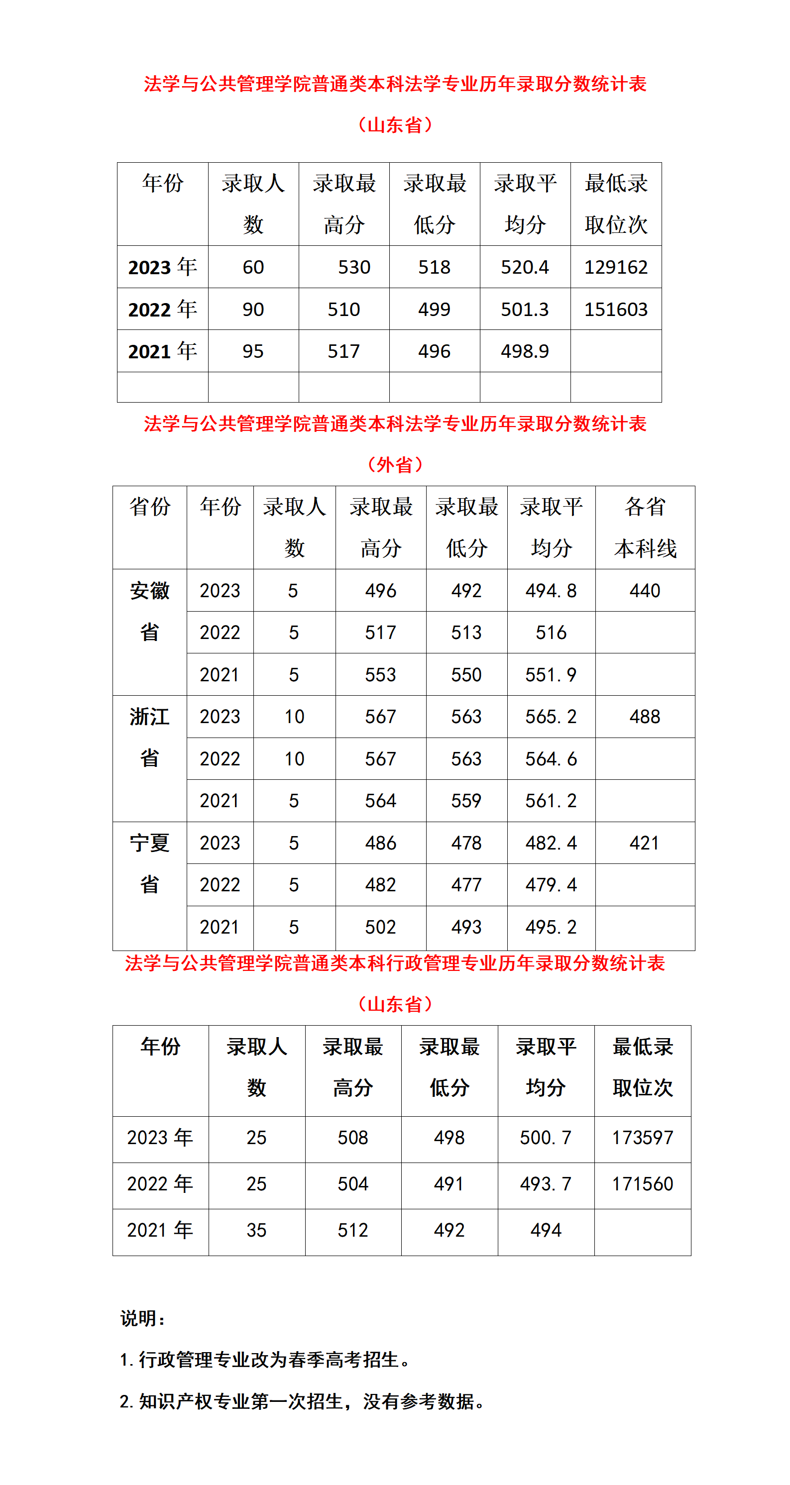 法学与公共管理学院普通类本科专业历年录取分数统计表