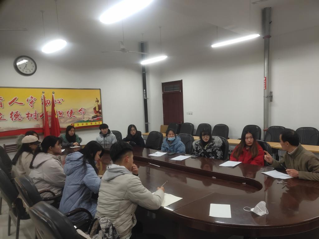 在与2017级法律本科、2019级法学专升本班预毕业生的交流中。陈伟老师强调了三个方面的内容。关于考研复试,陈伟老师讲解了通过图书馆中国知网数据库等途径获取研究资料的方法,强调要充分利用寒假进行考研复试准备;关于毕业论文,陈伟老师介绍了毕业论文工作计划,结合毕业论文写作模板对各部分的撰写要求进行了解释和说明,并对论文撰写的进度进行了安排;关于毕业实习,陈伟老师介绍了工作计划安排,讲解了毕业实习日志和实习报告的撰写要求。