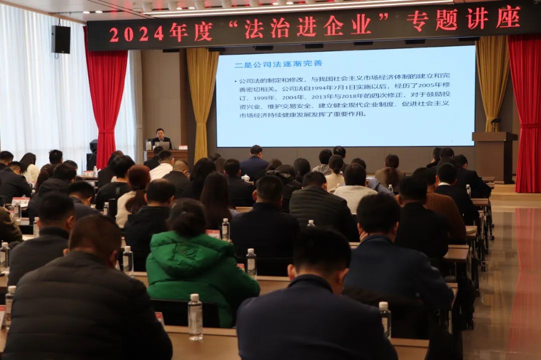 辅导报告以新公司法的颁布实施为背景,聚焦如何运用法治思维促进国有企业健康发展。杨振生从我国公司法的发展历程入手,讲解了新公司法的创新和亮点,重点解读了新公司法关于国家出资公司组织机构特别规定、对“国企”改革发展带来的机遇和新挑战等,并列举了大量鲜活案例加以剖析,为推动依法合规治企指明了思路、提出了建议。