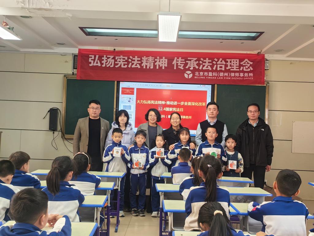 12月1日至7日是第七个“宪法宣传周”。12月5日上午,法学与公共管理学院联合北京市盈科(德州)律师事务所开展宪法宣讲活动,为解放南路小学学生普及宪法知识。
