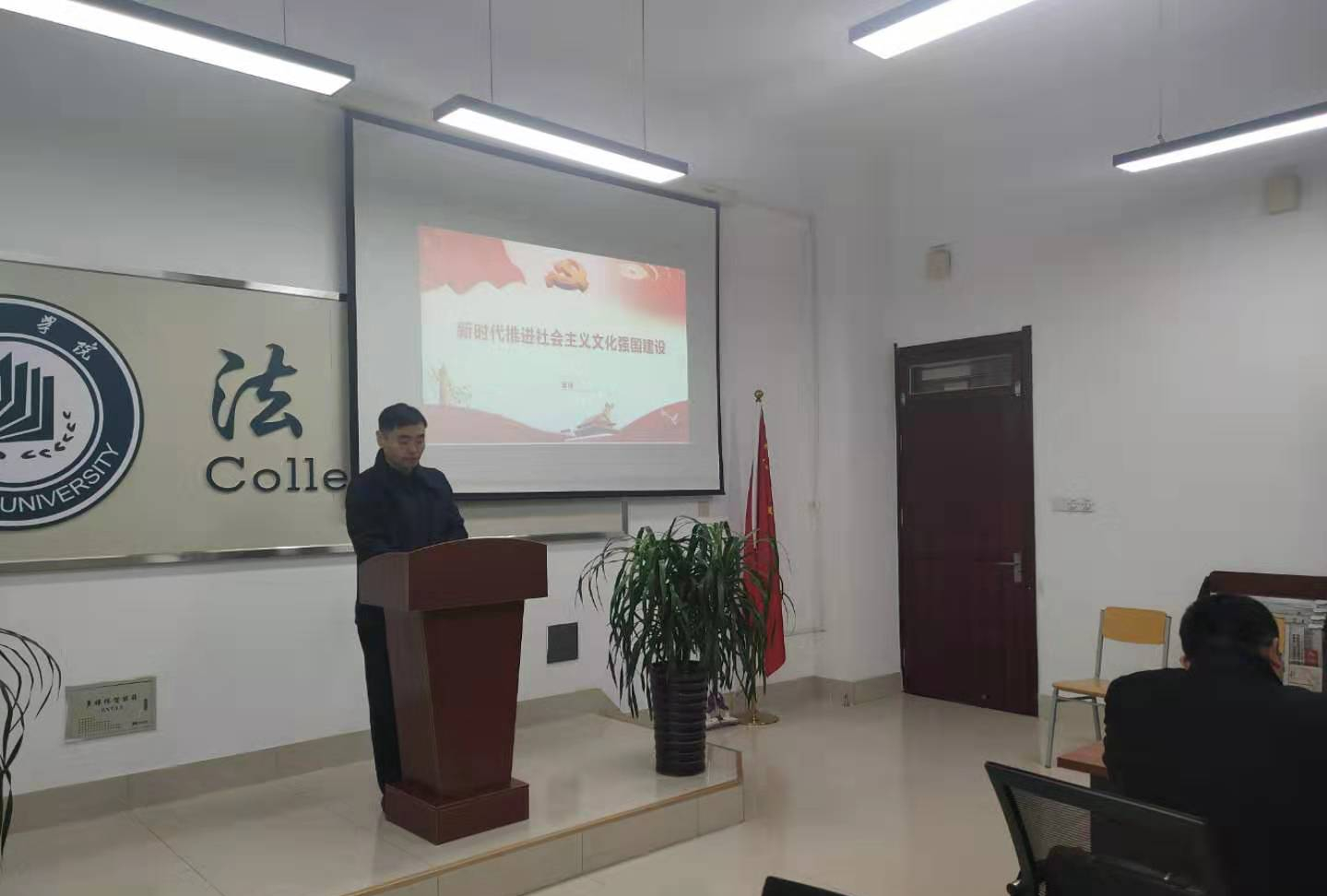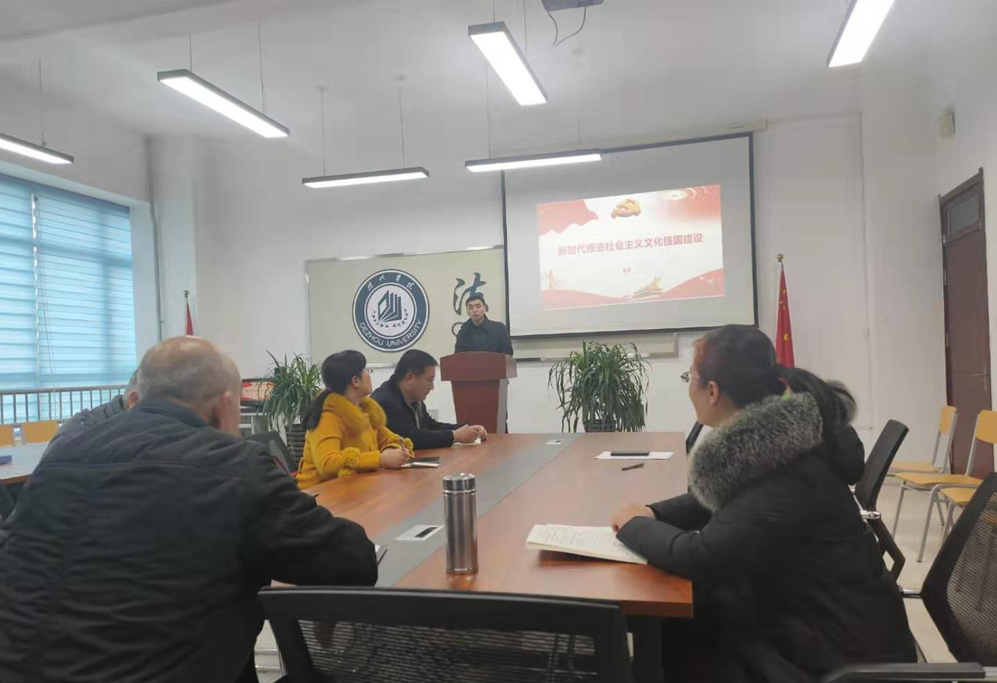 2020年11月23日,国产91中文综合字幕党总支副书记、院长夏锋教授在博文楼415党员活动室为第一教师党支部讲了一堂题为《新时代推进社会主义文化强国建设》的党课。