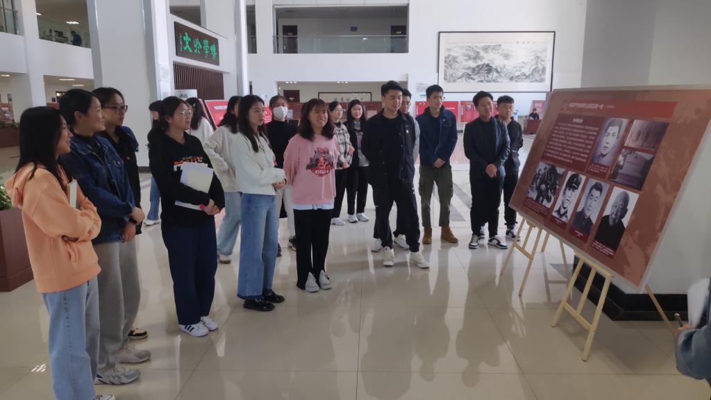 学生党员们走近展板,听着一个个生动的革命故事,通过这些留存的时代记忆,缅怀那段峥嵘岁月。纵览波澜壮阔的革命历史画卷,学生党员们深深的感受到党的伟大,充分认识到学习党史的重大意义。