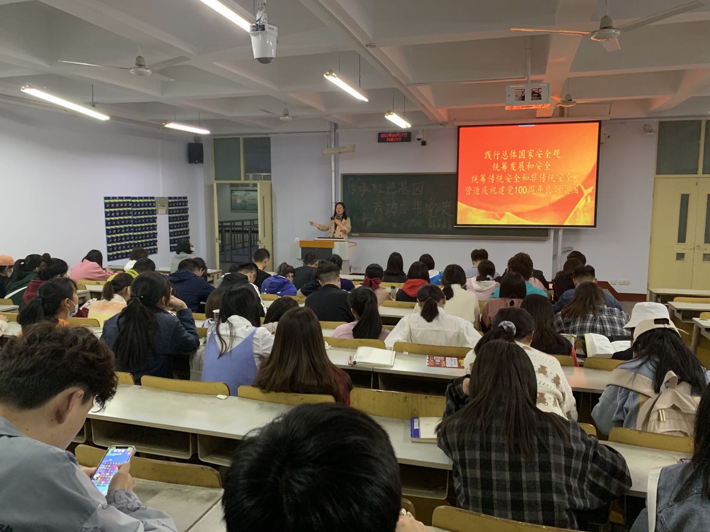 班会伊始,徐世慧老师引领同学们学习《中国共产党简史》五四运动和马克思主义的传播,并集中观看了《党史故事100讲》之“五四运动 唤醒民众”。集中观看党的辉煌成就、光荣传统、革命精神,重温中国共产党传奇的建党历程。此外,徐世慧老师就公寓工作、《德州学院学生违纪处分条例(修订)》的指导学习、提高学生网络安全防范意识等方面作出解读。